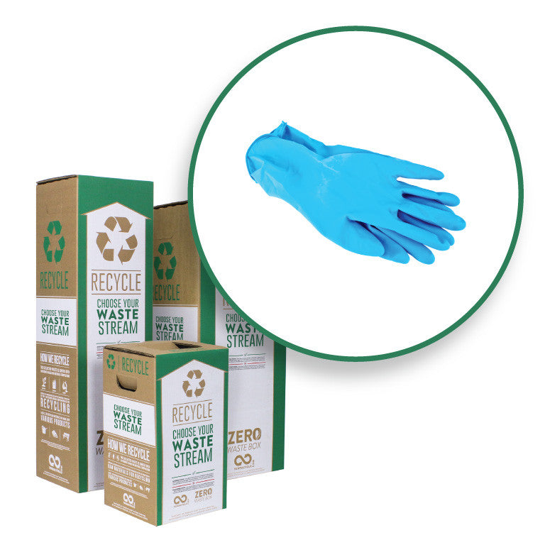 Use this Zero Waste Box to recycle any brand and size of used nitrile, latex, and vinyl gloves only.