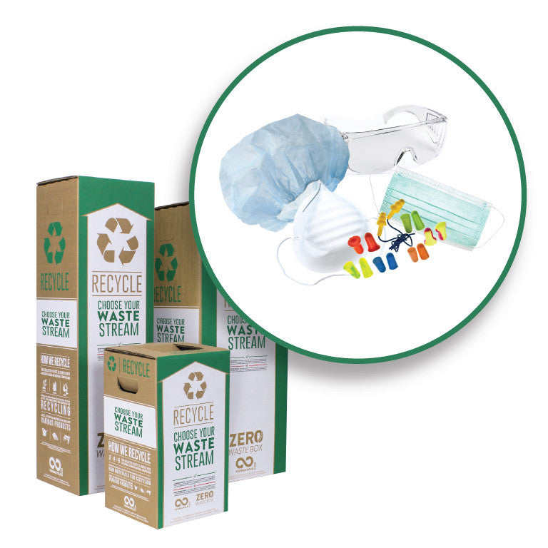 Use this Zero Waste Box to recycle all brands and sizes of disposable safety equipment and protective gear. This includes items such as: